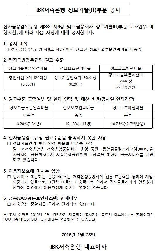 FY2015 정보기술(IT) 공시 작성자: 관리자 작성시간: 2016-01-28 11:31 조회수: 4,941 정보기술부분_미충족공시_2016.hwp (15 K) [2089] 이전글 FY2014 정보기술(IT) 공시 다음글 FY2016 정보기술(IT) 공시 목록