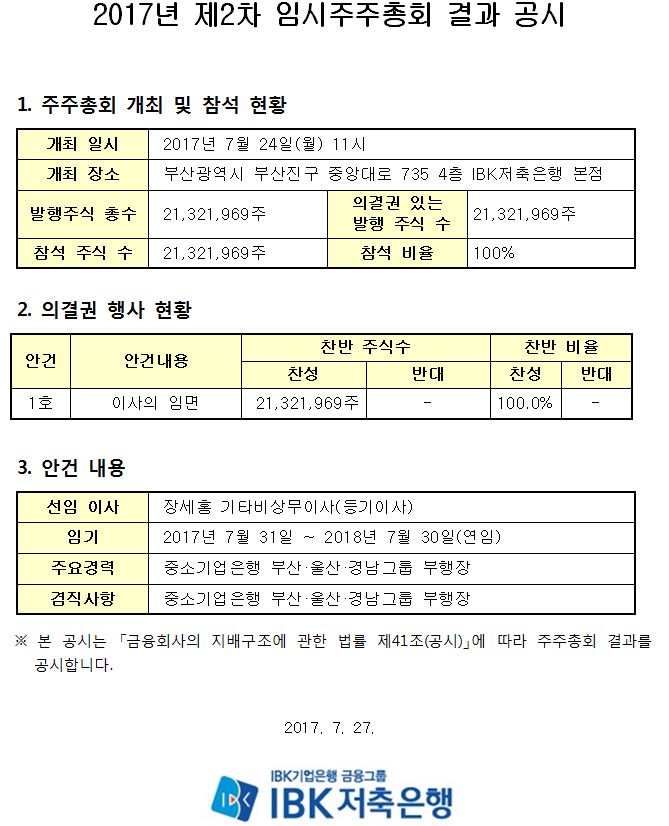 제7기 제2차 임시주주총회 결과 공시자료 작성자: 관리자 작성시간: 2017-07-27 14:46 조회수: 3,721 등록된 첨부파일이 없습니다. 이전글 직전사업연도 대비 당기순이익 30%이상 변경 사실 다음글 임원 선임 공시 목록