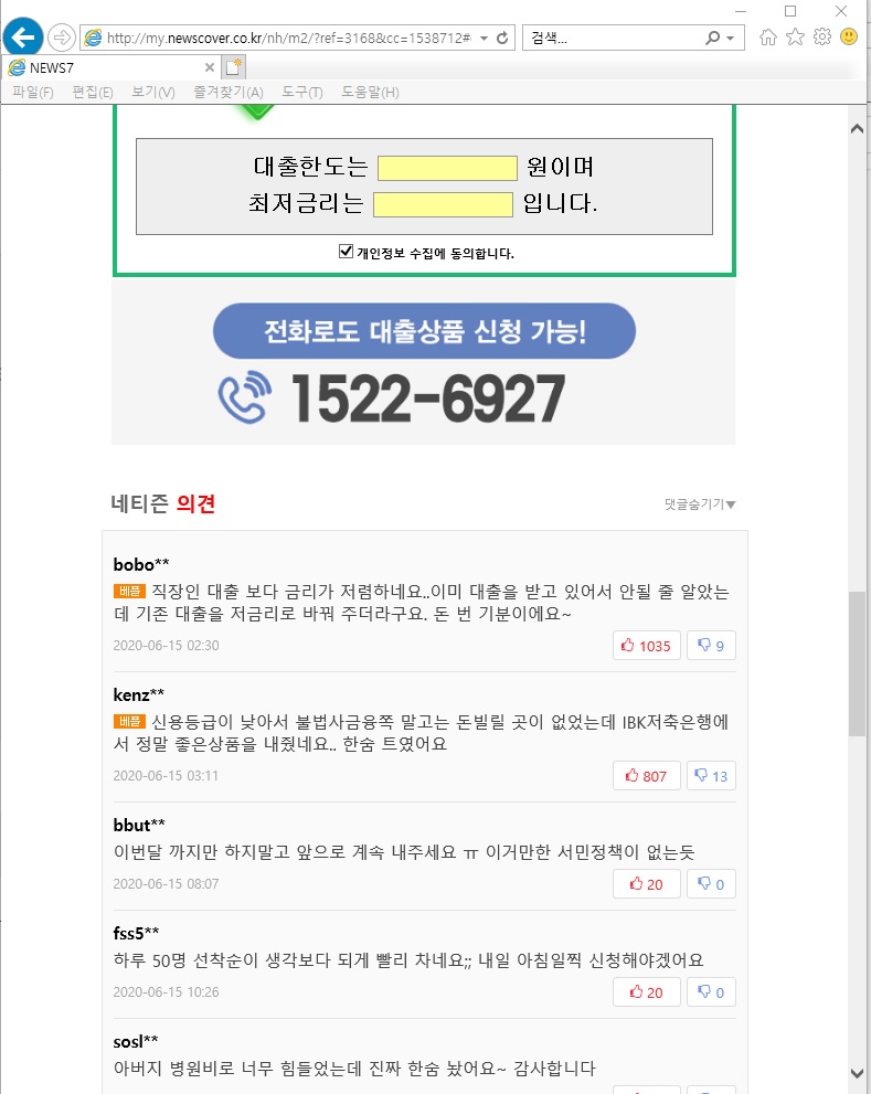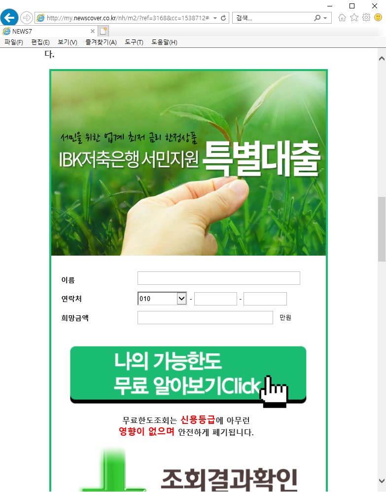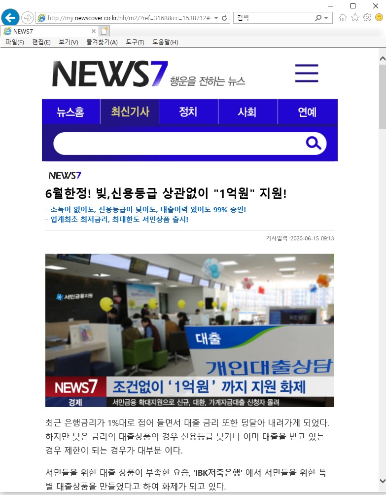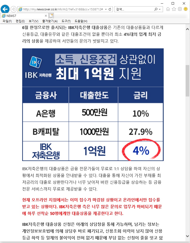 - IBK저축은행을 사칭한 불법광고가 발견되어 알려드리오니