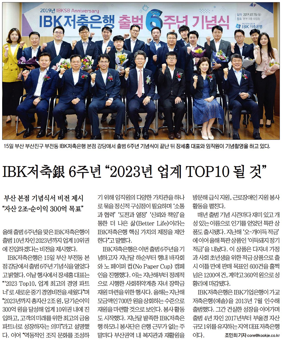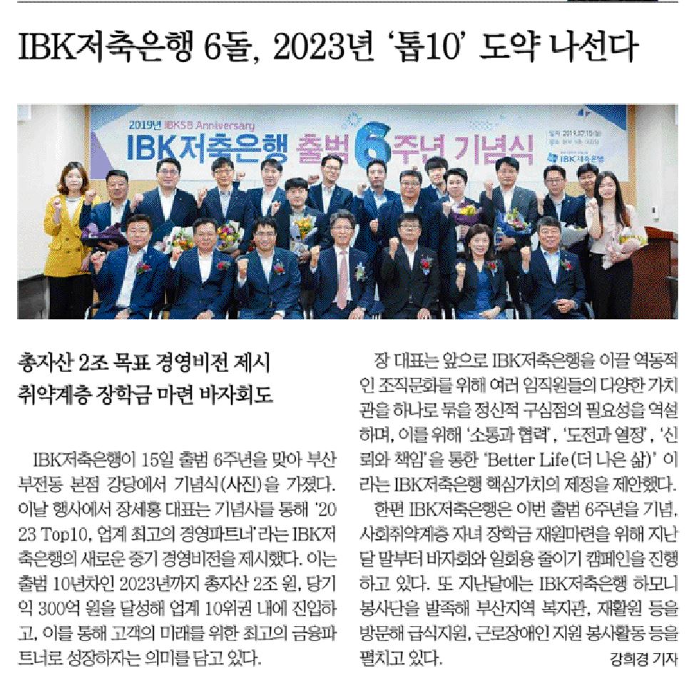 [지면보도] IBK저축은행 출범 6주년 기념식