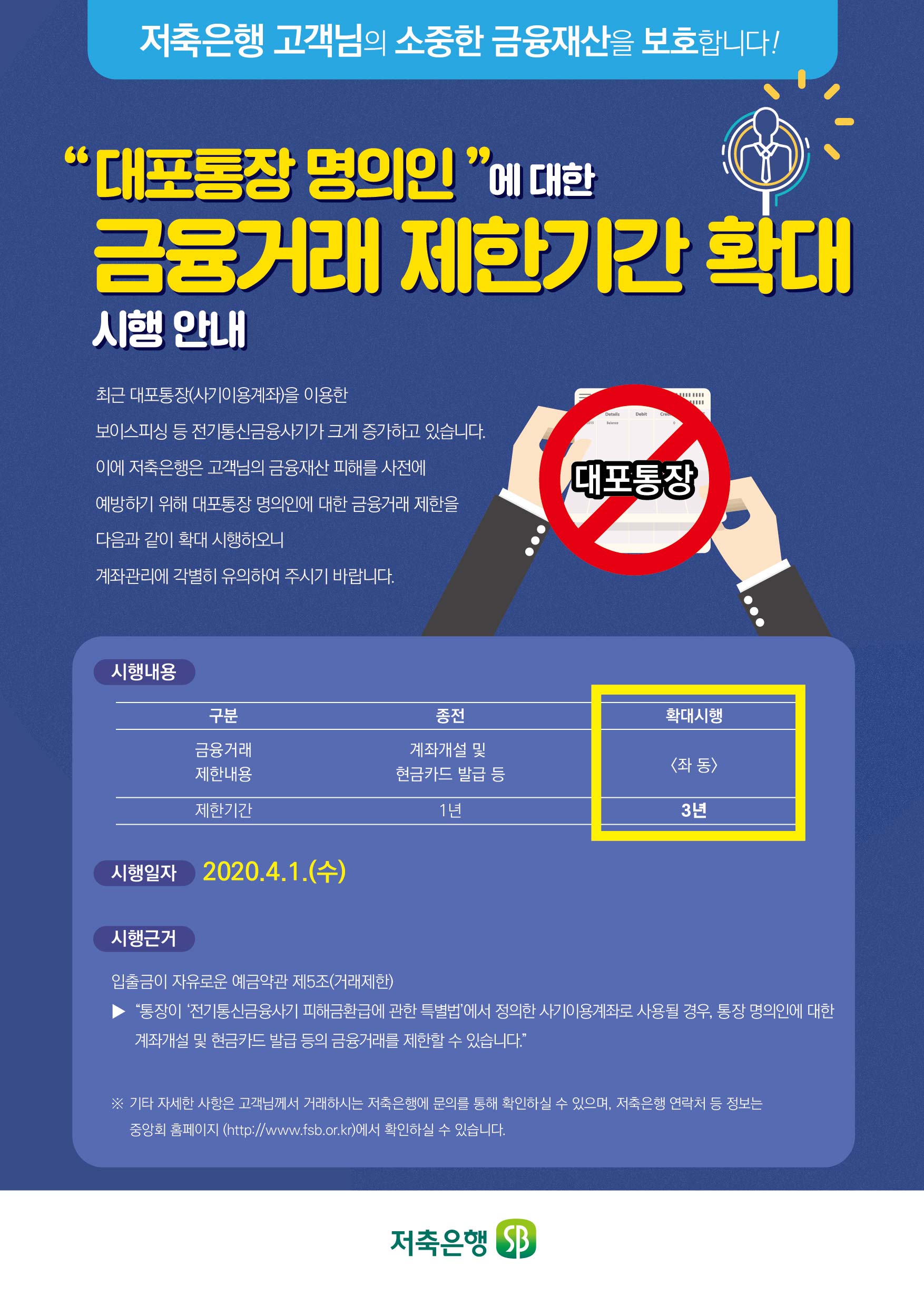 "대포통장 명의인" 에 대한 금융거래 제한기간 확대 시행 안내