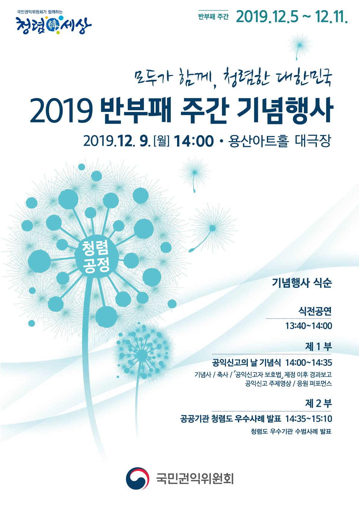 "모두가 함께, 청렴한 대한민국" 2019 반부패 주간 안내