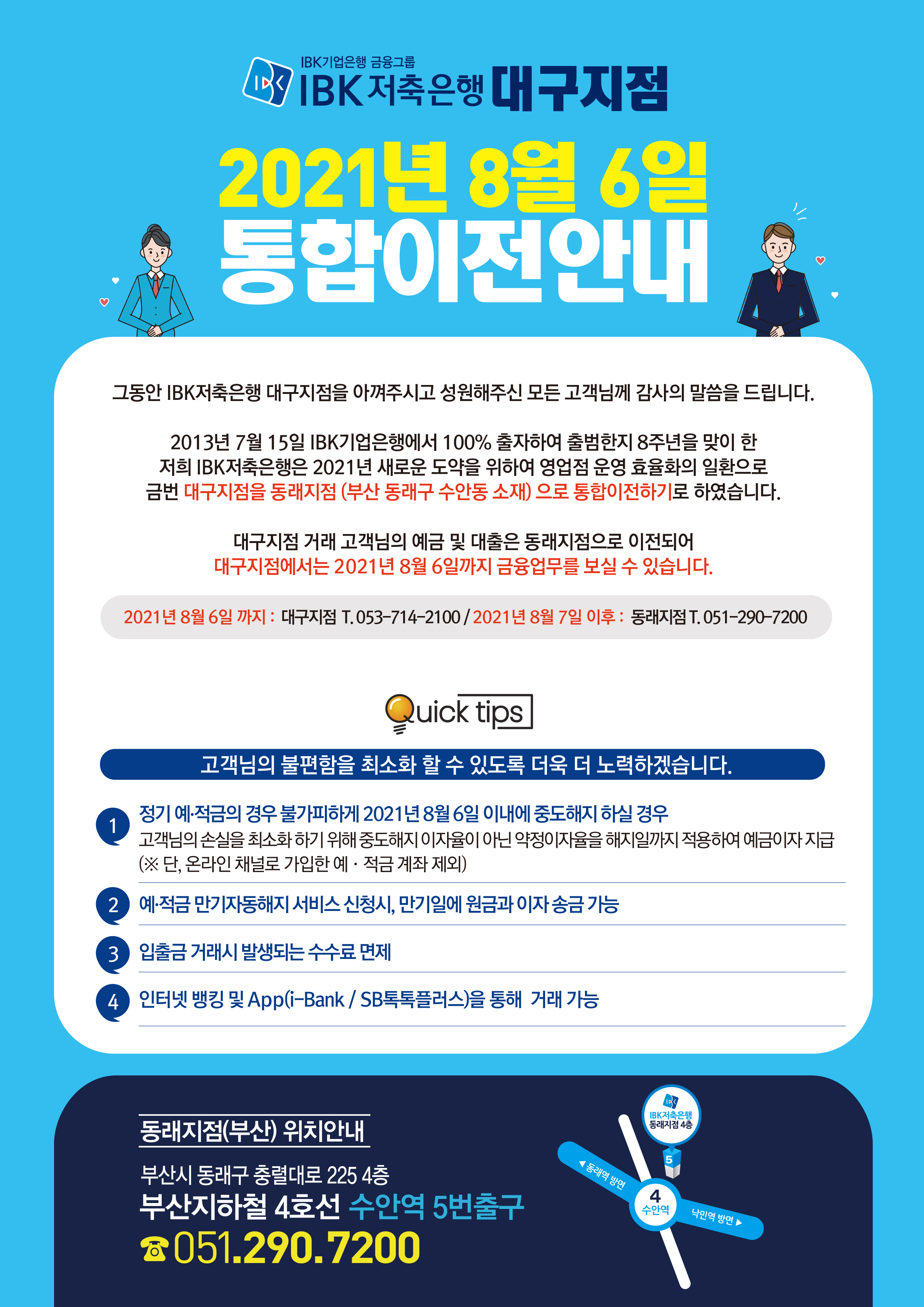 대구지점 통합이전 안내 작성자: 관리자 작성시간: 2021-06-11 16:05 조회수: 2,732 등록된 첨부파일이 없습니다. 이전글 (주)IBK저축은행 경력직(IB업무) 및 전문직(변호사, 회계사) 채용 공고 다음글 (주)IBK저축은행 경력직(회계/결산) 및 전문계약직(여신심사) 채용 수시 공고 목록