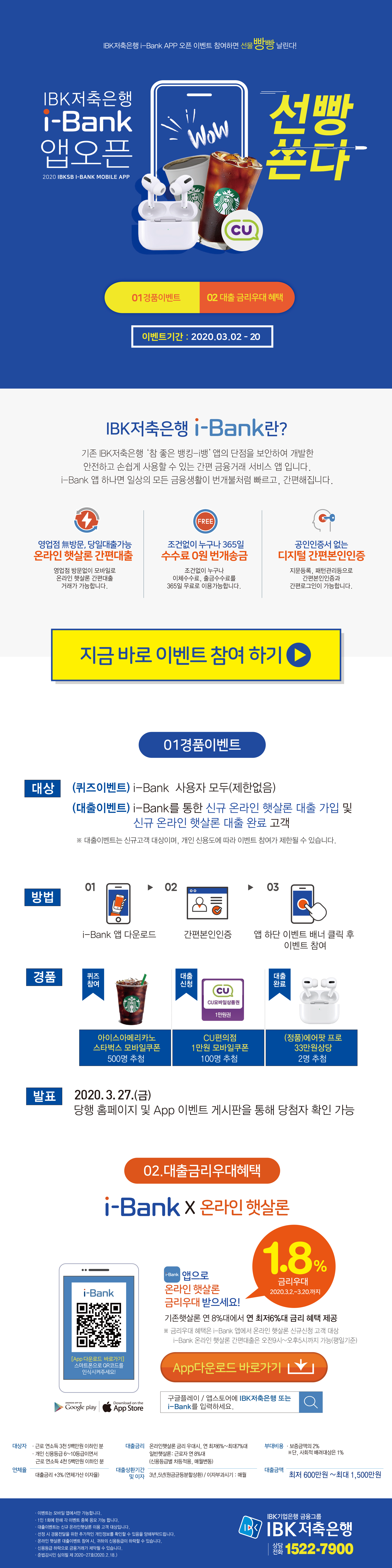 IBK저축은행 i-Bank APP 오픈 이벤트 안내 작성자: 관리자 작성시간: 2020-02-28 10:41 조회수: 3,927 등록된 첨부파일이 없습니다. 이전글 IBK저축은행 i-Bank 모바일 앱 OPEN 다음글 표준 여신거래기본약관 개정 시행 안내 목록