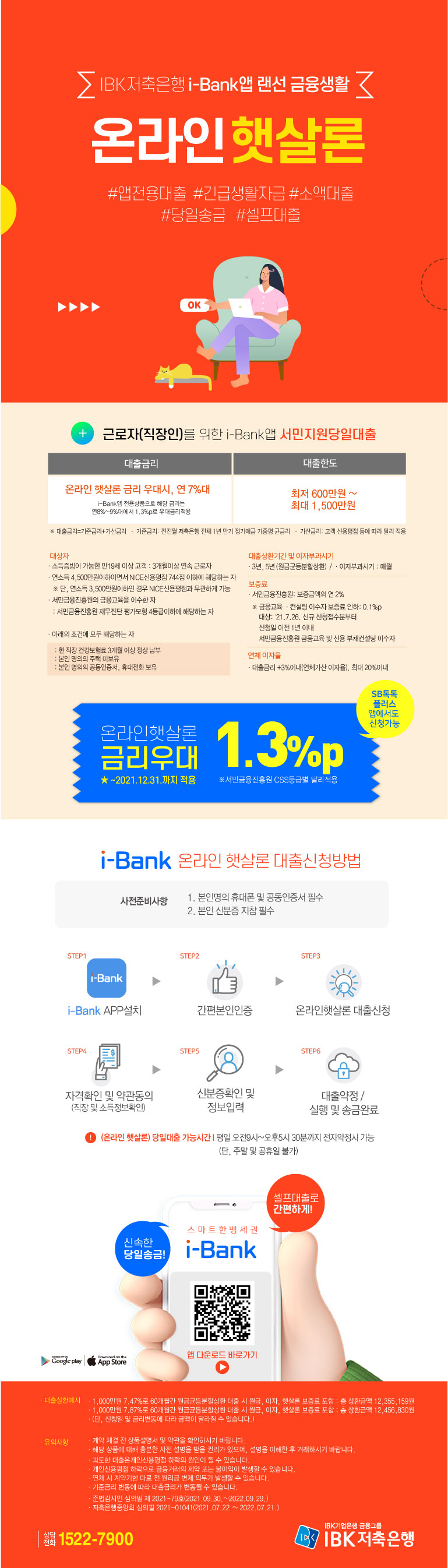 i-Bank App 온라인햇살론 금리우대 안내 작성자: 관리자 작성시간: 2020-03-24 09:11 조회수: 29,408 앱다운로드 바로가기: www.ibksb.co.kr/app_v2_download 등록된 첨부파일이 없습니다. 이전글 입찰공고 다음글 i-Bank 앱 이벤트 당첨자 안내 목록