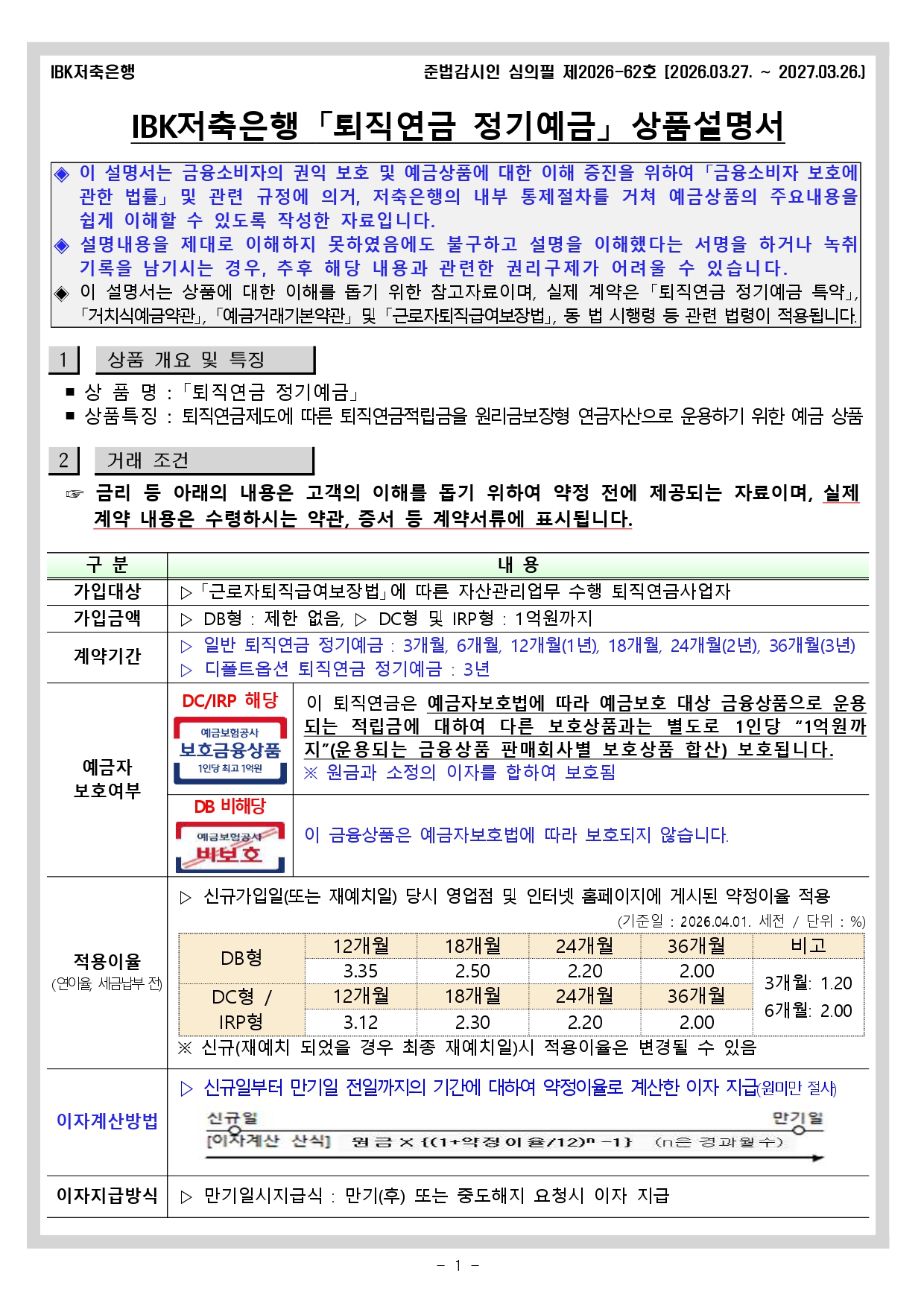 퇴직연금정기예금 상품설명서 작성자: 관리자 작성시간: 2019-07-02 16:43 조회수: 8,423 퇴직연금 정기예금 상품설명서_20260401시행.pdf (299 K) [6] 이전글 자유적립예금 상품설명서 다음글 ISA정기예금 상품설명서 목록