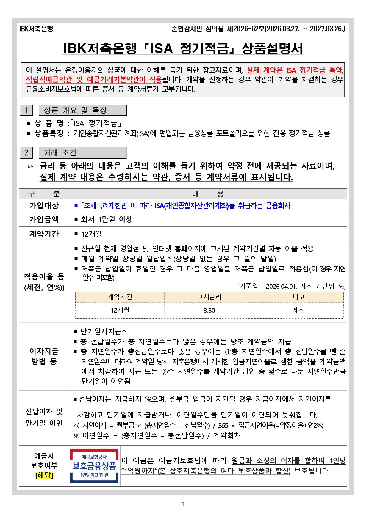 ISA 정기적금 상품설명서 작성자: 관리자 작성시간: 2025-03-09 17:14 조회수: 2,275 ISA정기적금 상품설명서_20260401시행.pdf (331 K) [4] 이전글 (판매중단) 이어드림(Year Dream) 회전 정기예금 상품설명서 다음글 사랑愛 얼라 정기적금 목록