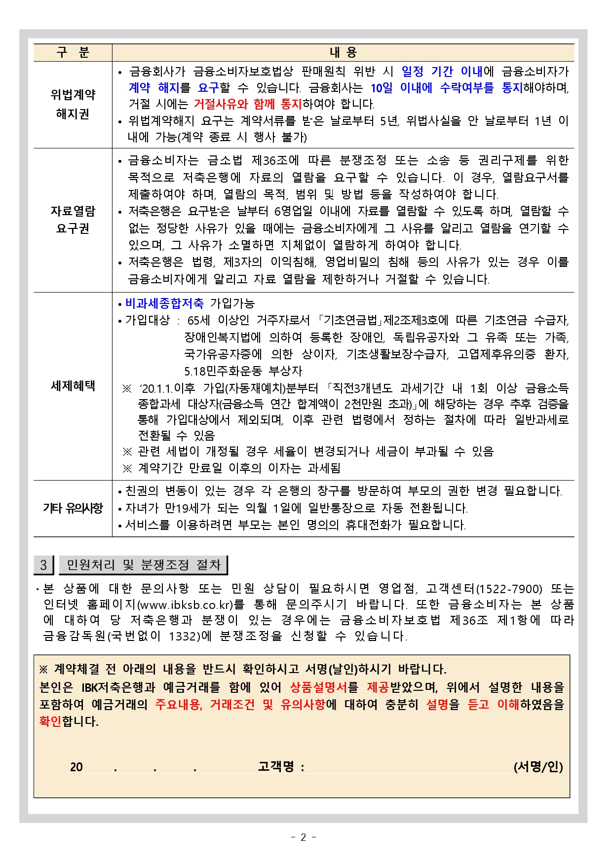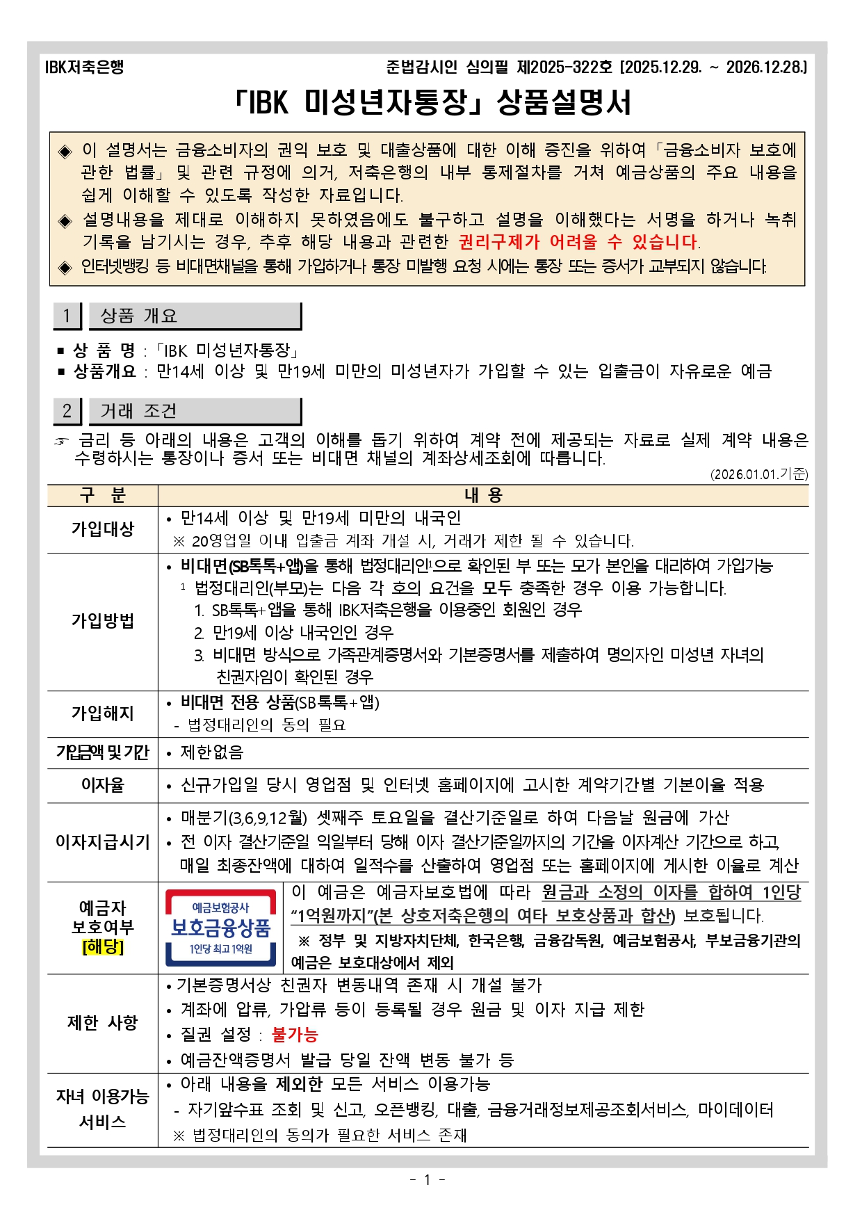 IBK 미성년자통장 상품설명서 작성자: 관리자 작성시간: 2025-10-28 17:53 조회수: 368 IBK미성년자 통장 상품설명서_20260101시행_v3.pdf (150 K) [217] 이전글 IBK 모임통장 상품설명서 다음글 기업자유예금플러스 상품설명서 목록